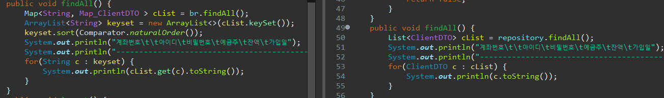 findAll은 Map의 양식에 맞게 수정만했습니다