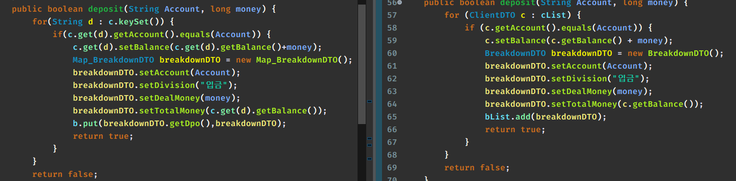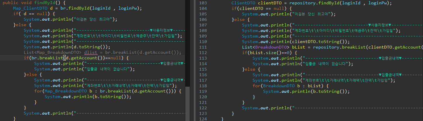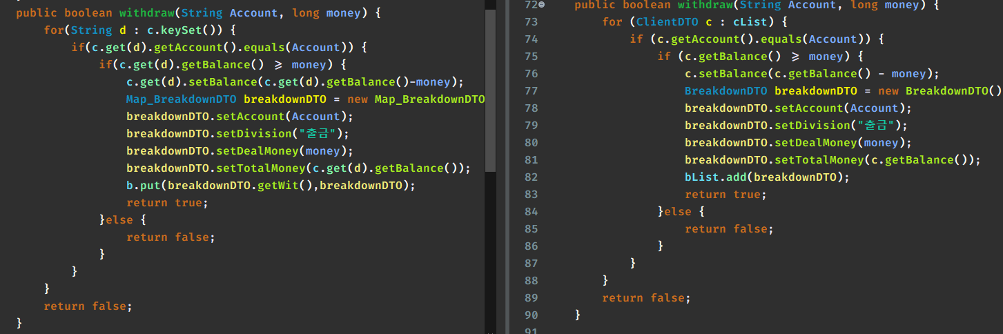 13일차에 만들었던 은행 시스템에 사용된 ArrayList를 Map으로 수정해보는 시간이였습니다
