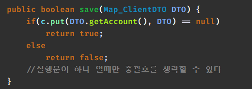 null이라면 Map자체에 문제가 있다는 말이기 때문에 fasle를 리턴하게 하였습니다