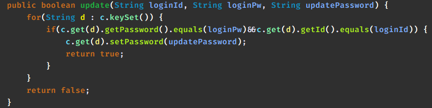 keysey을 String d에 대입하며 if문의 조건에 맞는경우 true for문을 다돌렸지만 if문에 맞는 조건식이 없는 경우