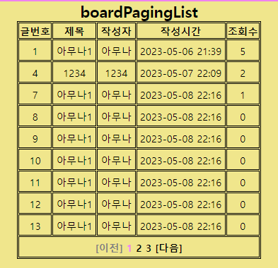 1페이지가 아닌 경우에는 [이전]을 클릭하면 현재 페이지보다 1 작은 페이지 요청