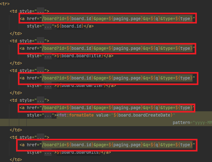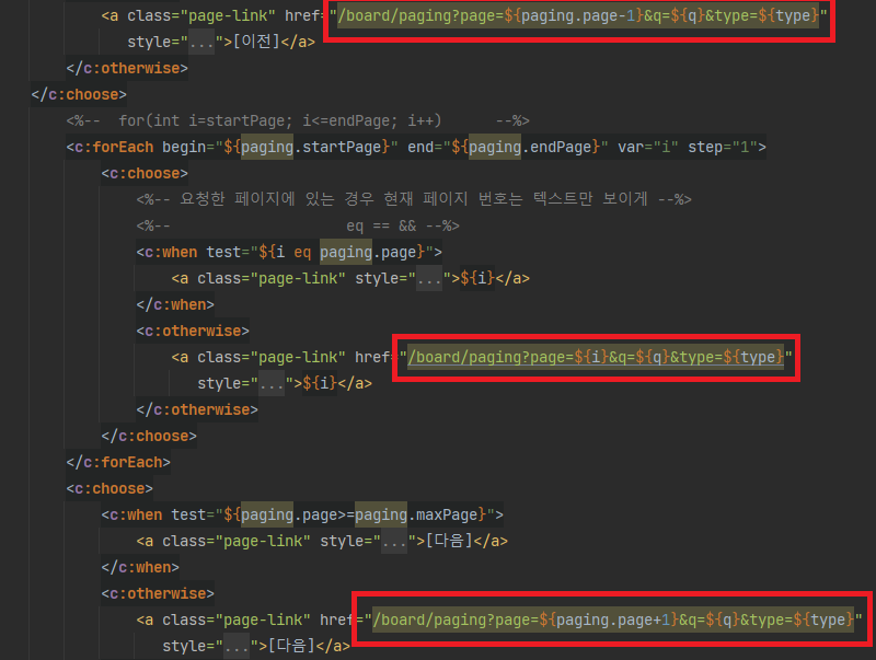 그외에는 검색한 결과가 1페이지 이상일 경우를 대비해 type과 ,q 를 함께 리턴해주어야합니다