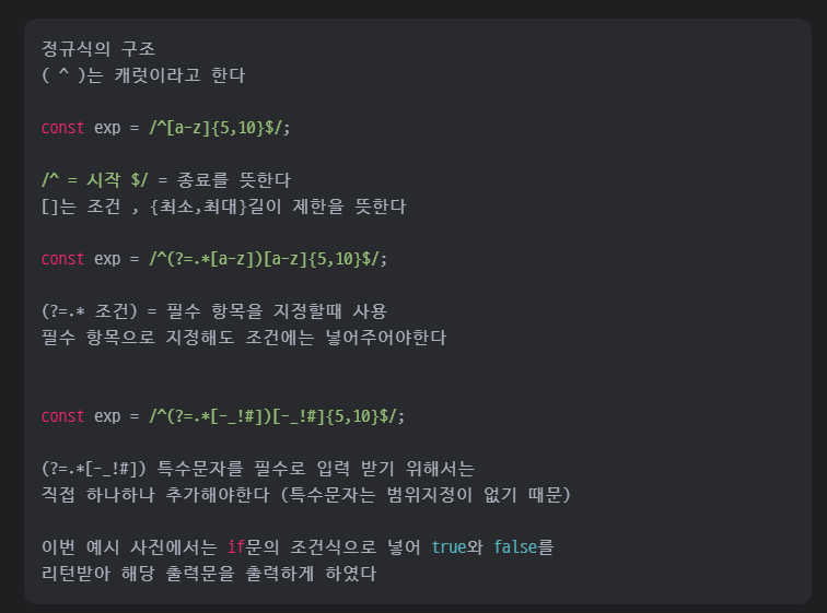passwordResult.innerHTML = "5~10자 영문 대 소문자, 숫자, 특수문자(!#$%) 하나 이상을 사용하세요.";